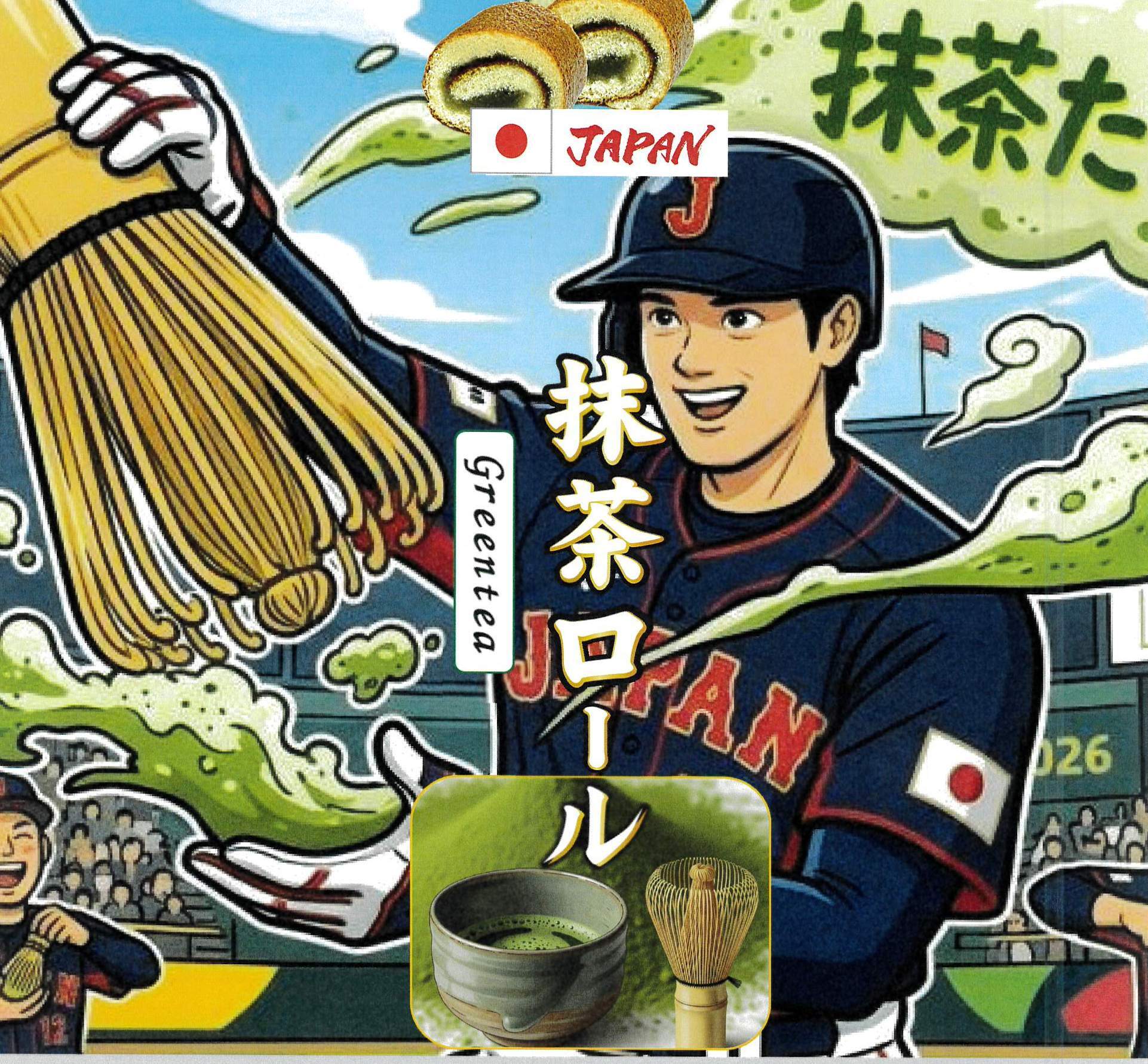 熊本産抹茶を特製あんに練り込み、熊本県産小麦粉使用のカステラ生地で1本1本丁寧に手巻きしました。